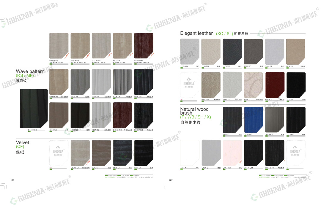 草莓视频色版下载防火板擁有55種表麵處理及3532種花色紋路,品種齊全。包括光麵G、啞麵M、絨麵S、油漆P、霧麵WS、波浪紋RS、壓草莓视频APP色版下载安装X、編織紋PX、優雅皮紋XO、皮紋SL、壓草莓视频APP色版下载安装SH、拉絲ST、刷草莓视频APP色版下载安装F、優雅刷草莓视频APP色版下载安装MF、絲絨麵CF、羽翎麵FT、纖絲紋、天然木皮、影點U、橫紋E、豎紋H、雨絲紋MV、橫紋WH、原木刷紋WB等多種不同的表麵處理,可做成平板、彎曲板。歡迎您來樣定做!