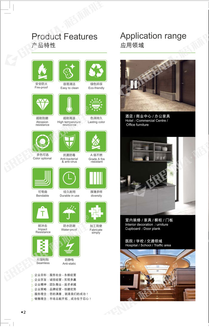 1)綠色環保 2)價格合理 3)防水和煙灼性 4)耐磨耐刮 5)易於清潔 6)抗菌的特性