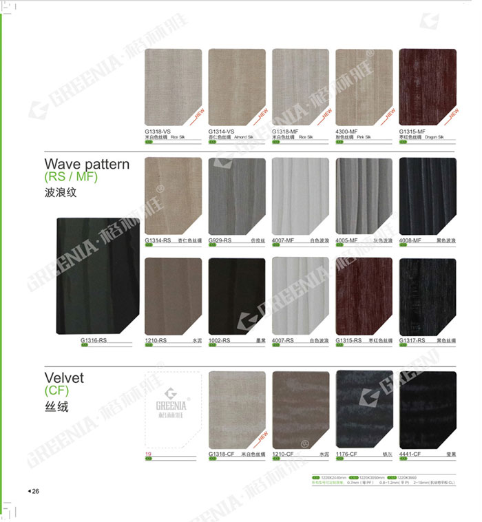 草莓视频色版下载防火板擁有55種表麵處理及3532種花色紋路,品種齊全。包括光麵G、啞麵M、絨麵S、油漆P、霧麵WS、波浪紋RS、壓草莓视频APP色版下载安装X、編織紋PX、優雅皮紋XO、皮紋SL、壓草莓视频APP色版下载安装SH、拉絲ST、刷草莓视频APP色版下载安装F、優雅刷草莓视频APP色版下载安装MF、絲絨麵CF、羽翎麵FT、纖絲紋、天然木皮、影點U、橫紋E、豎紋H、雨絲紋MV、橫紋WH、原木刷紋WB等多種不同的表麵處理,可做成平板、彎曲板。歡迎您來樣定做!