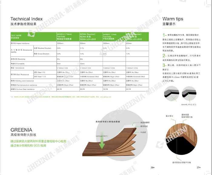 防火板俗稱耐火板,原名為熱固性樹脂浸漬紙高壓裝飾層積板,英文縮寫為HPL,是表麵裝飾用耐火建材的一種,有豐富的表麵色彩、花紋以及特殊的物性及方便加工性,廣泛用於室內裝飾的表麵材料。
